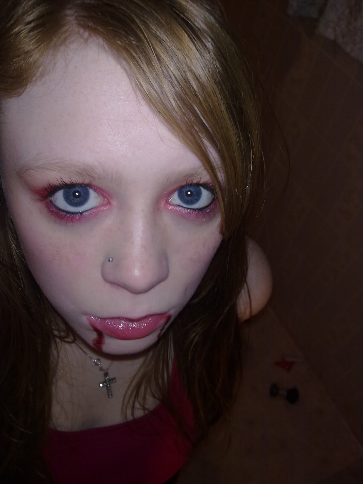 I used that lip gloss for the blood as well, and a bit of the red facepaint.